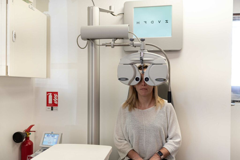 Mesure de la réfraction : Cette étape permet de déterminer si vous souffrez de troubles de la réfraction comme la myopie, l’hypermétropie ou l’astigmatisme. Des instruments spécifiques, comme un réfracteur, sont utilisés pour mesurer la capacité de l’œil à se focaliser correctement.